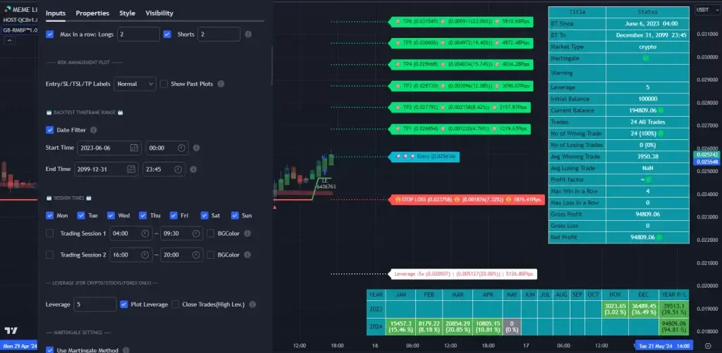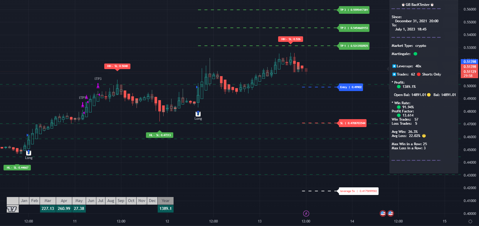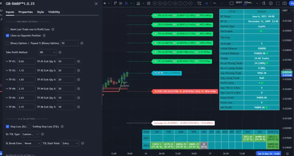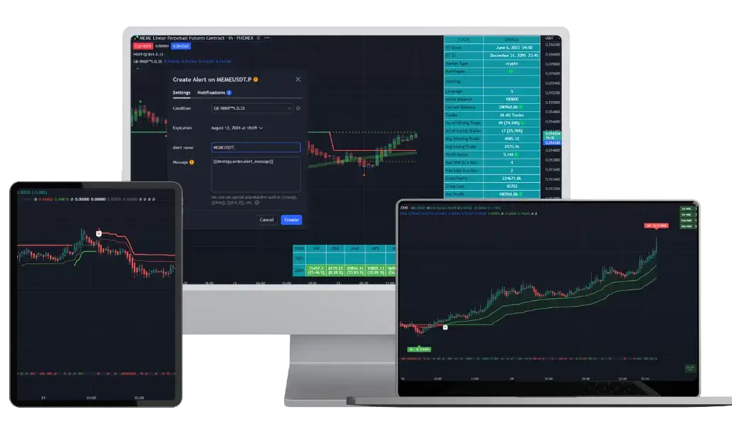 Set Position Sizes . Leverage/Margin . Trade Scheduler . Date Filter . Candle Types . Alerts . Show Signals . Filter Indicators . Onchart Backtester . 3rd Party Bot Connection .